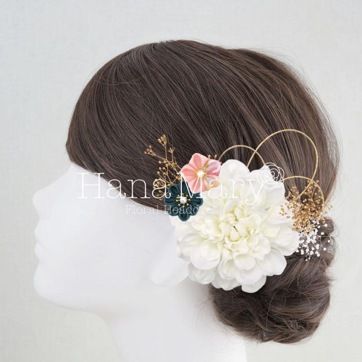 HanaMaryの髪飾りは生花をリアルに再現したアートフラワーと呼ばれるハイクオリティーな造花を使用しています。耐久性に優れ、成人式・卒業式やウェディングなどに何度でも繰り返し使用することができます。