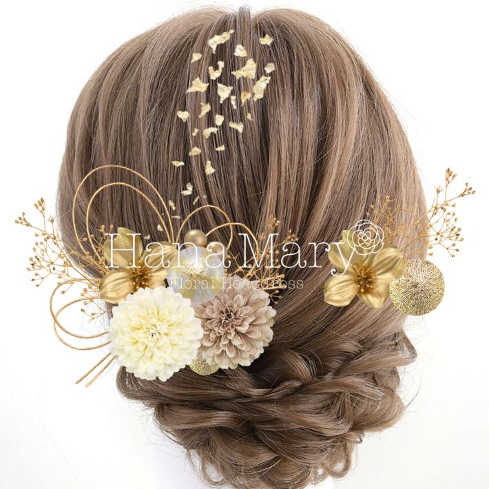 HanaMaryの髪飾りは生花をリアルに再現したアートフラワーと呼ばれるハイクオリティーな造花を使用しています。耐久性に優れ、成人式・卒業式やウェディングなどに何度でも繰り返し使用することができます。