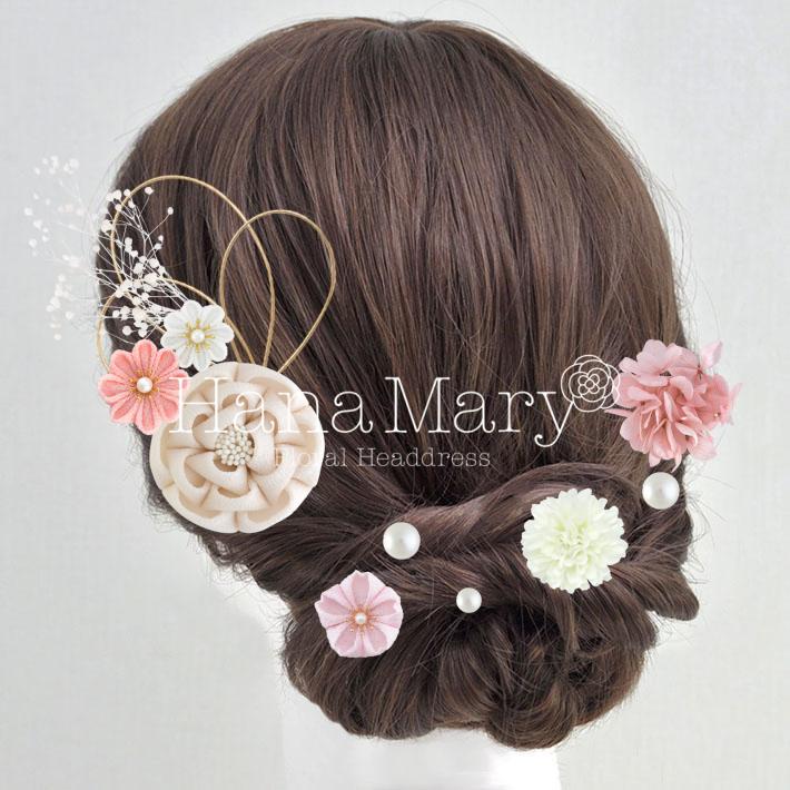 HanaMaryの髪飾りは生花をリアルに再現したアートフラワーと呼ばれるハイクオリティーな造花を使用しています。耐久性に優れ、成人式・卒業式やウェディングなどに何度でも繰り返し使用することができます。