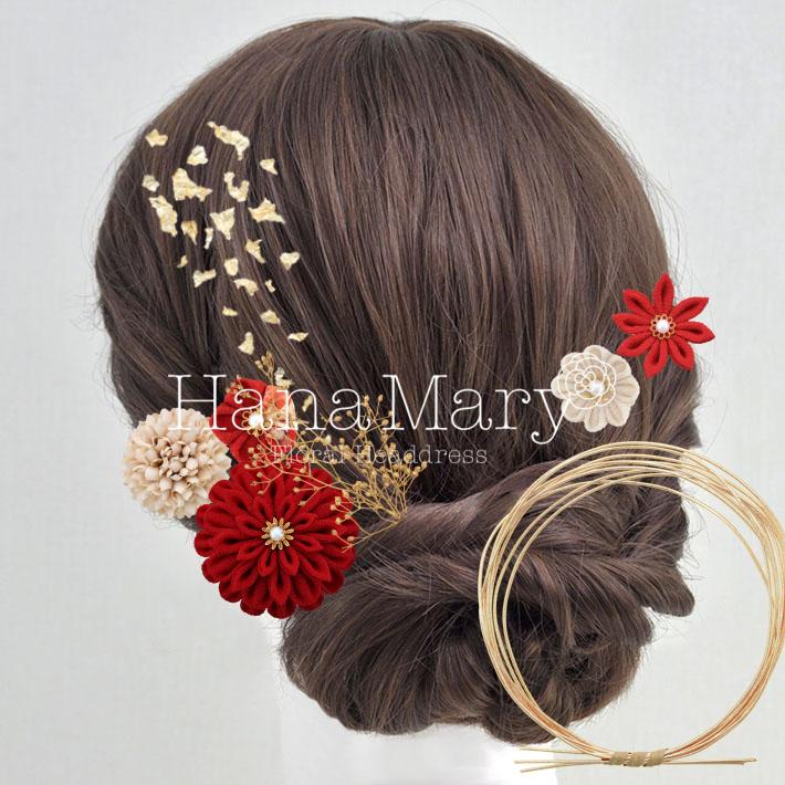 HanaMaryの髪飾りは生花をリアルに再現したアートフラワーと呼ばれるハイクオリティーな造花を使用しています。耐久性に優れ、成人式・卒業式やウェディングなどに何度でも繰り返し使用することができます。