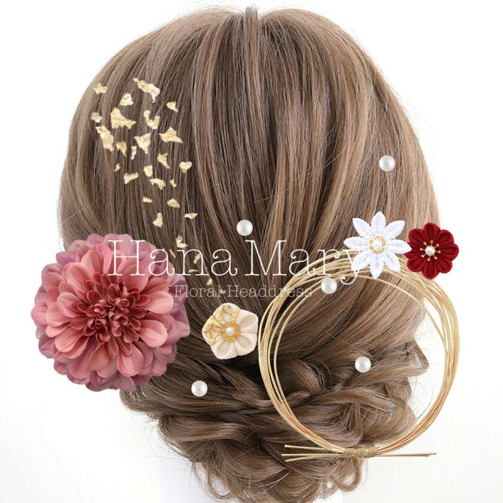 HanaMaryの髪飾りは生花をリアルに再現したアートフラワーと呼ばれるハイクオリティーな造花を使用しています。耐久性に優れ、成人式・卒業式やウェディングなどに何度でも繰り返し使用することができます。