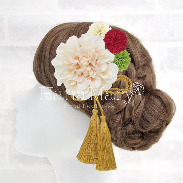 HanaMaryの髪飾りは生花をリアルに再現したアートフラワーと呼ばれるハイクオリティーな造花を使用しています。耐久性に優れ、成人式・卒業式やウェディングなどに何度でも繰り返し使用することができます。