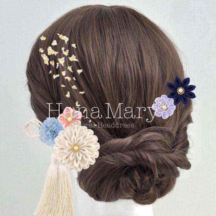 HanaMaryの髪飾りは生花をリアルに再現したアートフラワーと呼ばれるハイクオリティーな造花を使用しています。耐久性に優れ、成人式・卒業式やウェディングなどに何度でも繰り返し使用することができます。