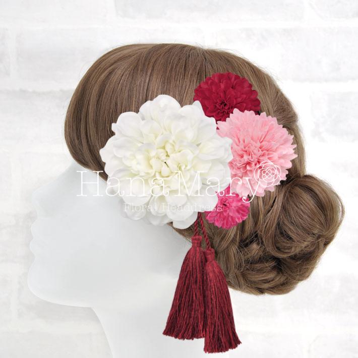 HanaMaryの髪飾りは生花をリアルに再現したアートフラワーと呼ばれるハイクオリティーな造花を使用しています。耐久性に優れ、成人式・卒業式やウェディングなどに何度でも繰り返し使用することができます。