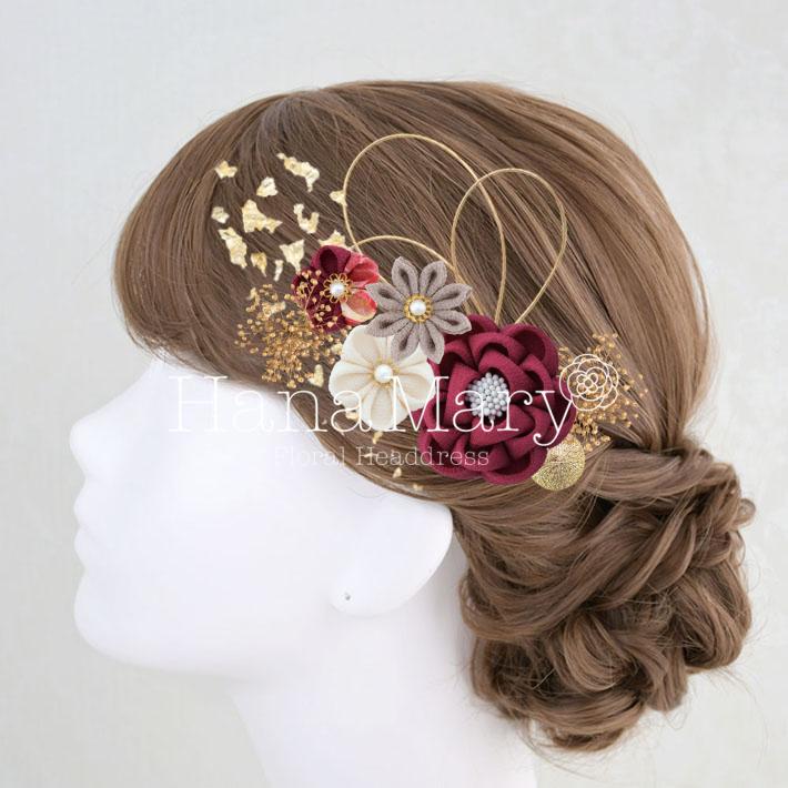 HanaMaryの髪飾りは生花をリアルに再現したアートフラワーと呼ばれるハイクオリティーな造花を使用しています。耐久性に優れ、成人式・卒業式やウェディングなどに何度でも繰り返し使用することができます。