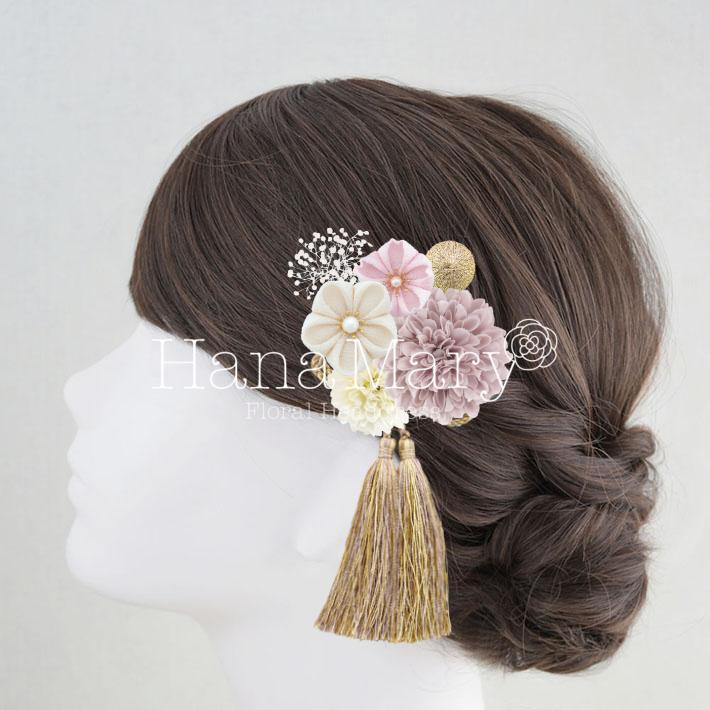 HanaMaryの髪飾りは生花をリアルに再現したアートフラワーと呼ばれるハイクオリティーな造花を使用しています。耐久性に優れ、成人式・卒業式やウェディングなどに何度でも繰り返し使用することができます。