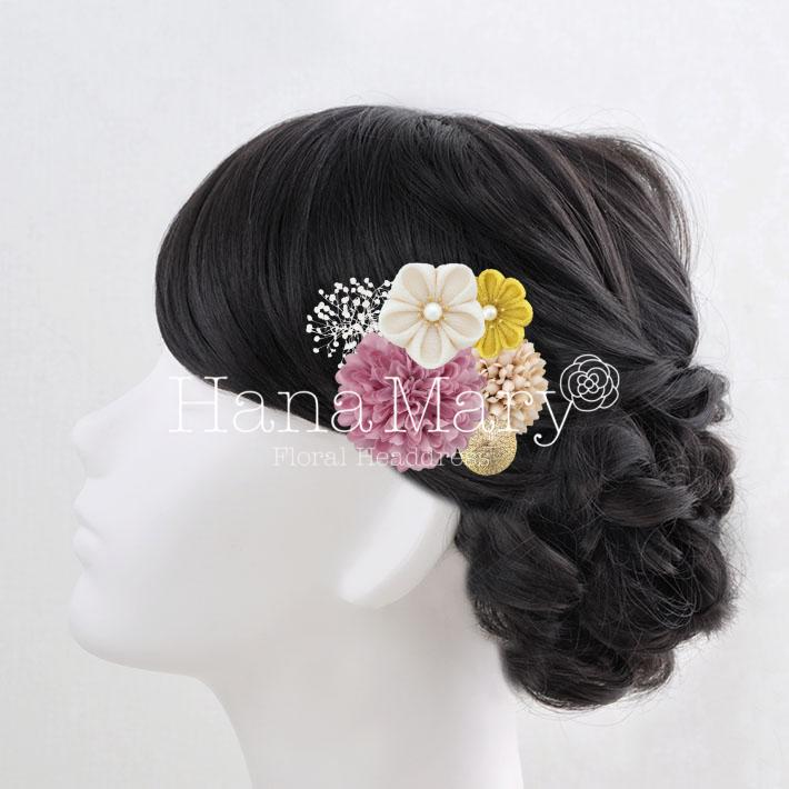 HanaMaryの髪飾りは生花をリアルに再現したアートフラワーと呼ばれるハイクオリティーな造花を使用しています。耐久性に優れ、成人式・卒業式やウェディングなどに何度でも繰り返し使用することができます。
