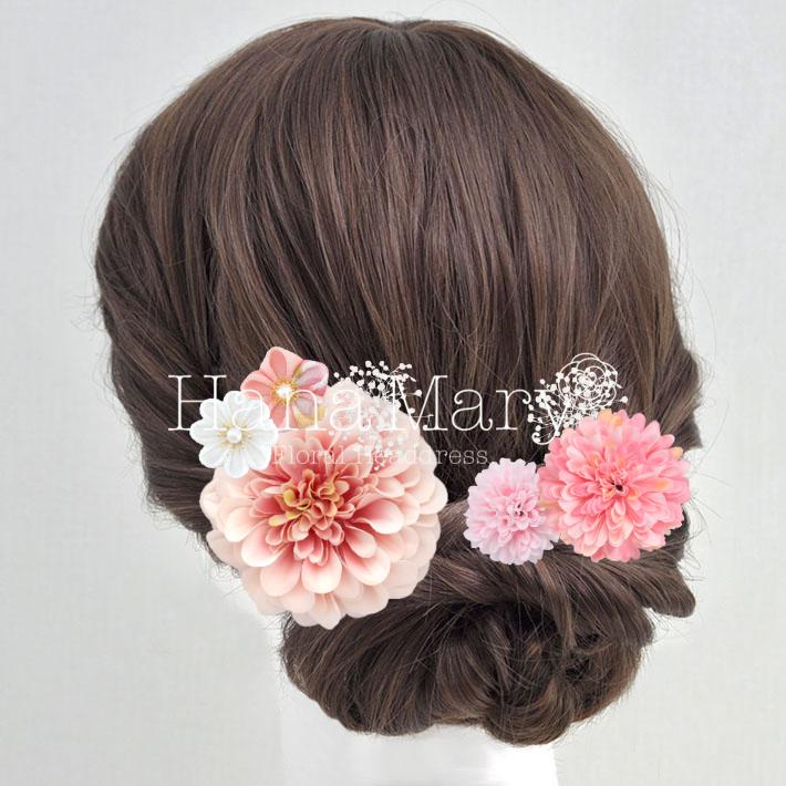 その日のヘアスタイルによって自由に一輪一輪配置できます。お花の数が多い場合でも、アメピンを追加して簡単にしっかりと固定できます。