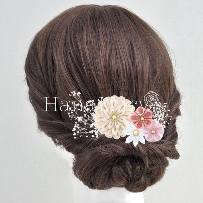 HanaMaryの髪飾りは生花をリアルに再現したアートフラワーと呼ばれるハイクオリティーな造花を使用しています。耐久性に優れ、成人式・卒業式やウェディングなどに何度でも繰り返し使用することができます。