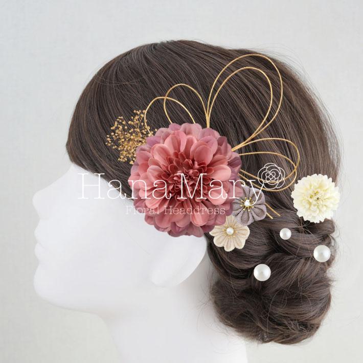 HanaMaryの髪飾りは生花をリアルに再現したアートフラワーと呼ばれるハイクオリティーな造花を使用しています。耐久性に優れ、成人式・卒業式やウェディングなどに何度でも繰り返し使用することができます。