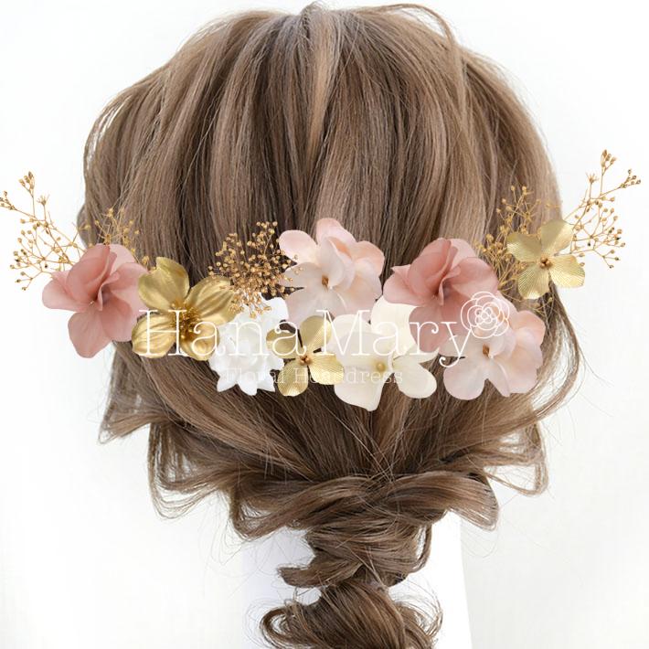 その日のヘアスタイルによって自由に一輪一輪配置できます。お花の数が多い場合でも、アメピンを追加して簡単にしっかりと固定できます。