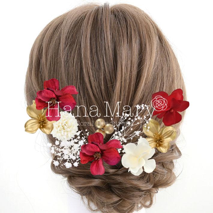 その日のヘアスタイルによって自由に一輪一輪配置できます。お花の数が多い場合でも、アメピンを追加して簡単にしっかりと固定できます。