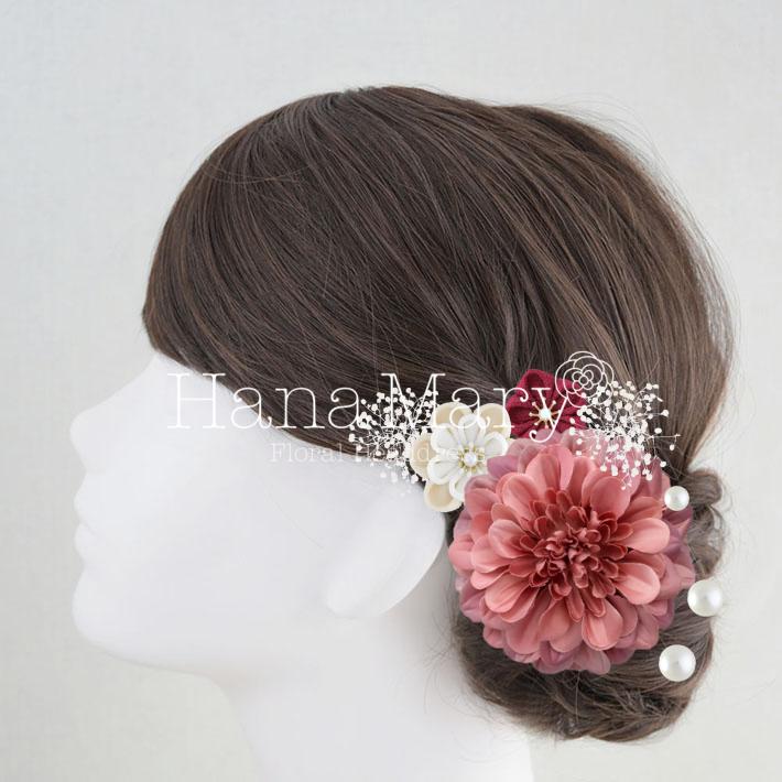 HanaMaryの髪飾りは生花をリアルに再現したアートフラワーと呼ばれるハイクオリティーな造花を使用しています。耐久性に優れ、成人式・卒業式やウェディングなどに何度でも繰り返し使用することができます。