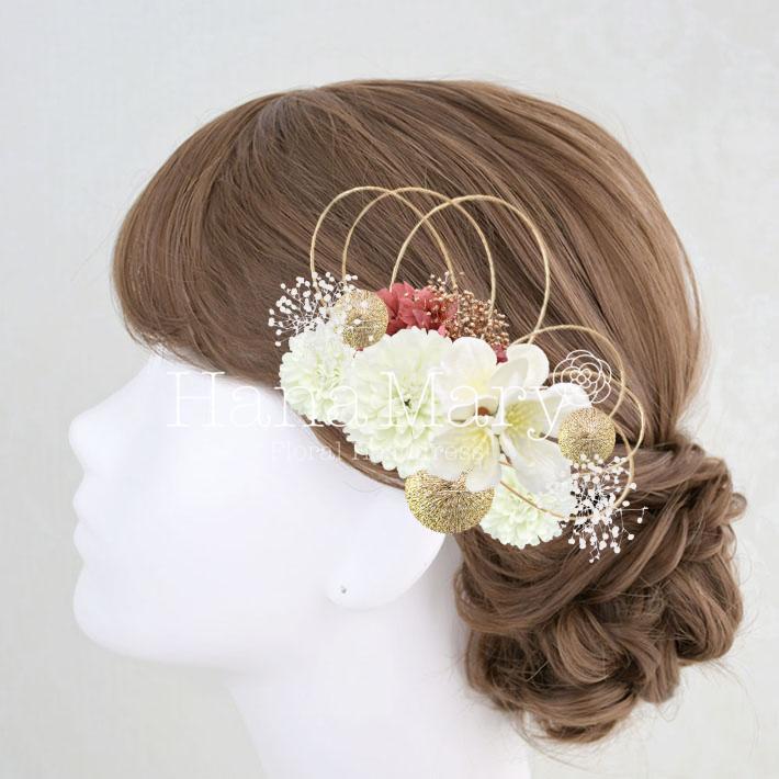 HanaMaryの髪飾りは生花をリアルに再現したアートフラワーと呼ばれるハイクオリティーな造花を使用しています。耐久性に優れ、成人式・卒業式やウェディングなどに何度でも繰り返し使用することができます。