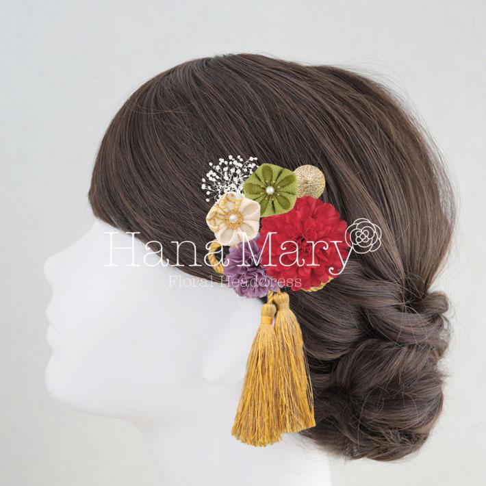 HanaMaryの髪飾りは生花をリアルに再現したアートフラワーと呼ばれるハイクオリティーな造花を使用しています。耐久性に優れ、成人式・卒業式やウェディングなどに何度でも繰り返し使用することができます。