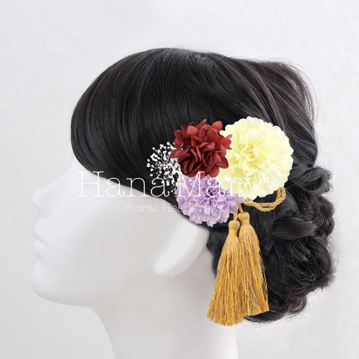 HanaMaryの髪飾りは生花をリアルに再現したアートフラワーと呼ばれるハイクオリティーな造花を使用しています。耐久性に優れ、成人式・卒業式やウェディングなどに何度でも繰り返し使用することができます。