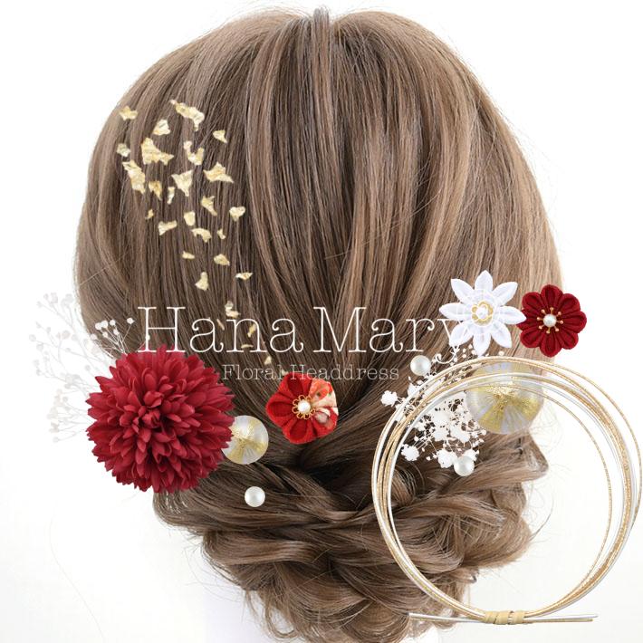 HanaMaryの髪飾りは生花をリアルに再現したアートフラワーと呼ばれるハイクオリティーな造花を使用しています。耐久性に優れ、成人式・卒業式やウェディングなどに何度でも繰り返し使用することができます。