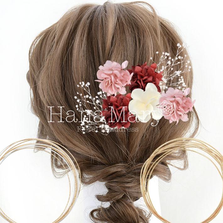 HanaMaryの髪飾りは生花をリアルに再現したアートフラワーと呼ばれるハイクオリティーな造花を使用しています。耐久性に優れ、成人式・卒業式やウェディングなどに何度でも繰り返し使用することができます。