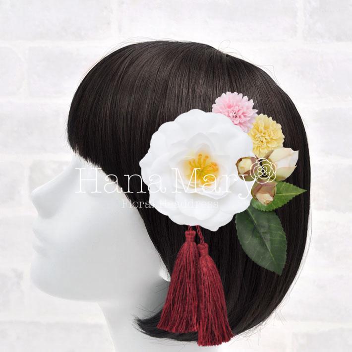 HanaMaryの髪飾りは生花をリアルに再現したアートフラワーと呼ばれるハイクオリティーな造花を使用しています。耐久性に優れ、成人式・卒業式やウェディングなどに何度でも繰り返し使用することができます。