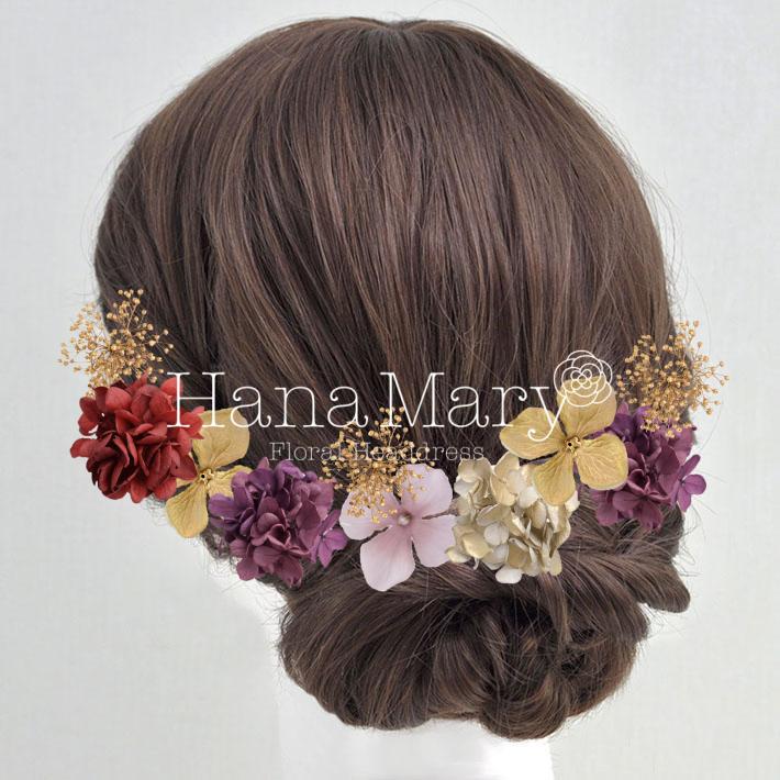 HanaMaryの髪飾りは生花をリアルに再現したアートフラワーと呼ばれるハイクオリティーな造花を使用しています。耐久性に優れ、成人式・卒業式やウェディングなどに何度でも繰り返し使用することができます。