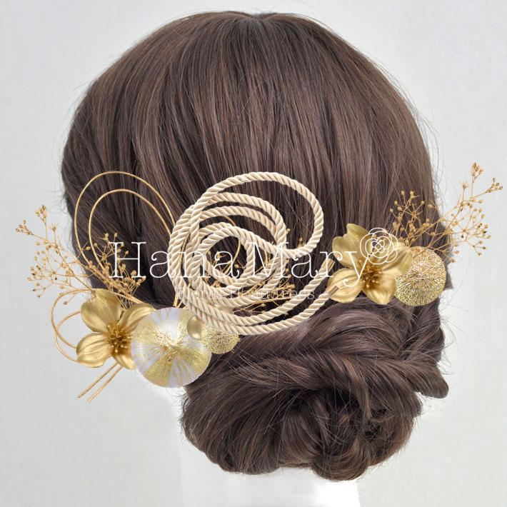 シャンパンゴールドの椿や桜の髪飾り