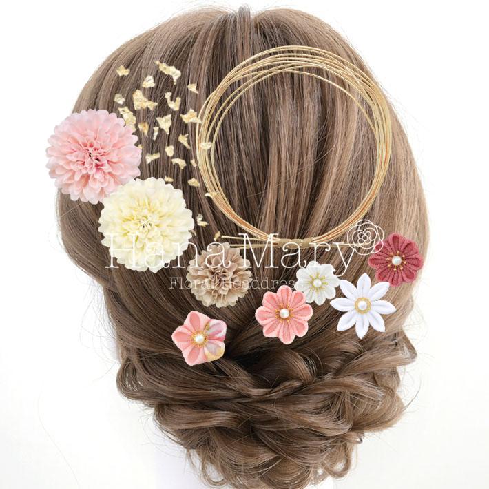 HanaMaryの髪飾りは生花をリアルに再現したアートフラワーと呼ばれるハイクオリティーな造花を使用しています。耐久性に優れ、成人式・卒業式やウェディングなどに何度でも繰り返し使用することができます。