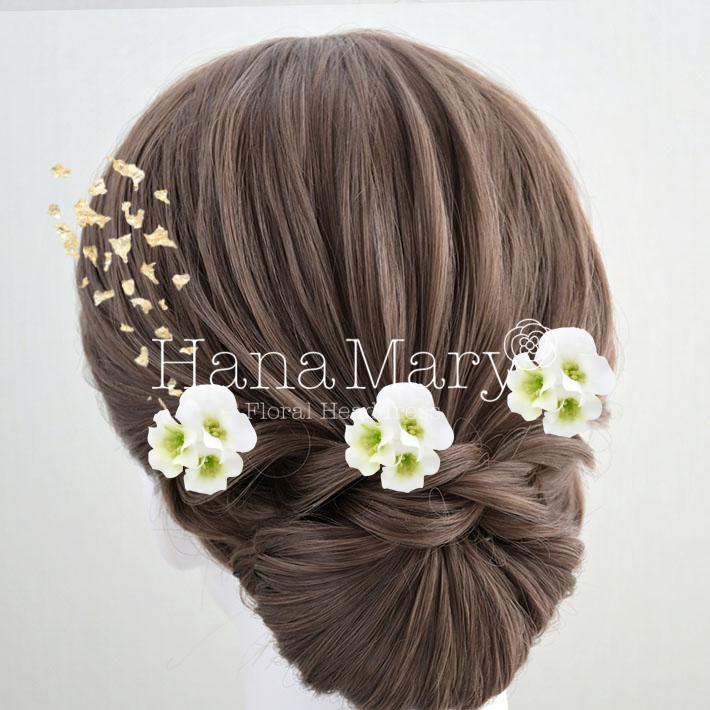 その日のヘアスタイルによって自由に一輪一輪配置できます。お花の数が多い場合でも、アメピンを追加して簡単にしっかりと固定できます。