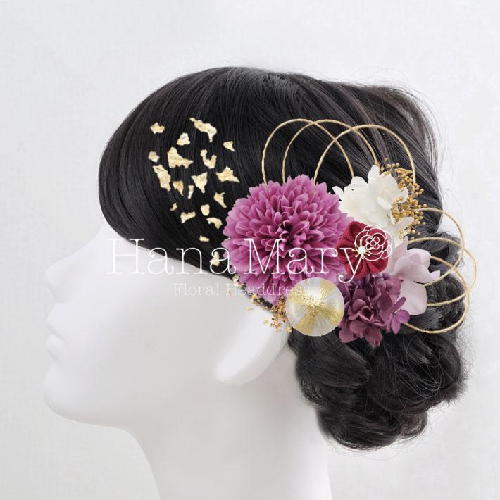 HanaMaryの髪飾りは生花をリアルに再現したアートフラワーと呼ばれるハイクオリティーな造花を使用しています。耐久性に優れ、成人式・卒業式やウェディングなどに何度でも繰り返し使用することができます。