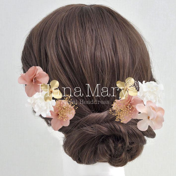 その日のヘアスタイルによって自由に一輪一輪配置できます。お花の数が多い場合でも、アメピンを追加して簡単にしっかりと固定できます。