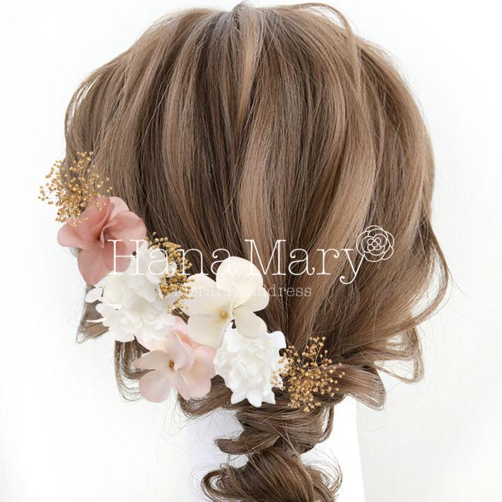 その日のヘアスタイルによって自由に一輪一輪配置できます。お花の数が多い場合でも、アメピンを追加して簡単にしっかりと固定できます。
