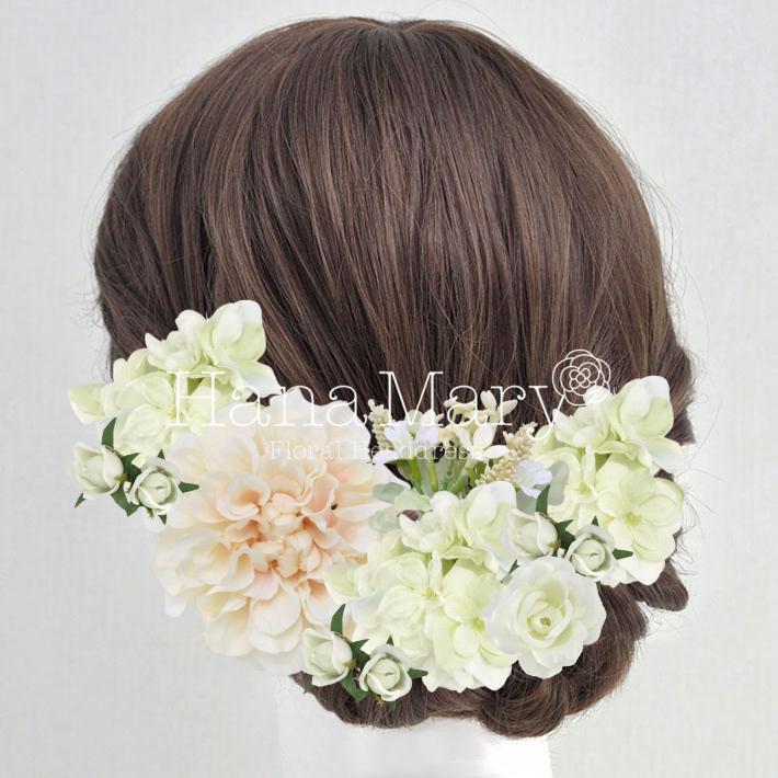HanaMaryの髪飾りは生花をリアルに再現したアートフラワーと呼ばれるハイクオリティーな造花を使用しています。耐久性に優れ、成人式・卒業式やウェディングなどに何度でも繰り返し使用することができます。