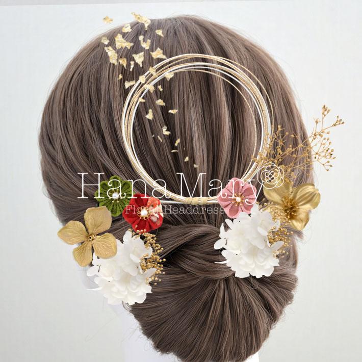 HanaMaryの髪飾りは生花をリアルに再現したアートフラワーと呼ばれるハイクオリティーな造花を使用しています。耐久性に優れ、成人式・卒業式やウェディングなどに何度でも繰り返し使用することができます。