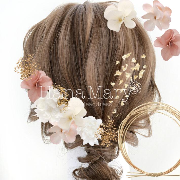 その日のヘアスタイルによって自由に一輪一輪配置できます。お花の数が多い場合でも、アメピンを追加して簡単にしっかりと固定できます。
