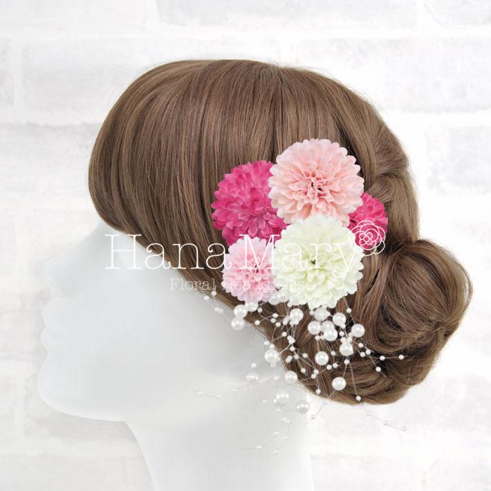 その日のヘアスタイルによって自由に一輪一輪配置できます。お花の数が多い場合でも、アメピンを追加して簡単にしっかりと固定できます。