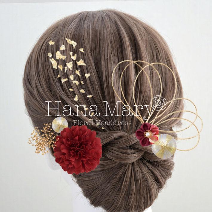 HanaMaryの髪飾りは生花をリアルに再現したアートフラワーと呼ばれるハイクオリティーな造花を使用しています。耐久性に優れ、成人式・卒業式やウェディングなどに何度でも繰り返し使用することができます。