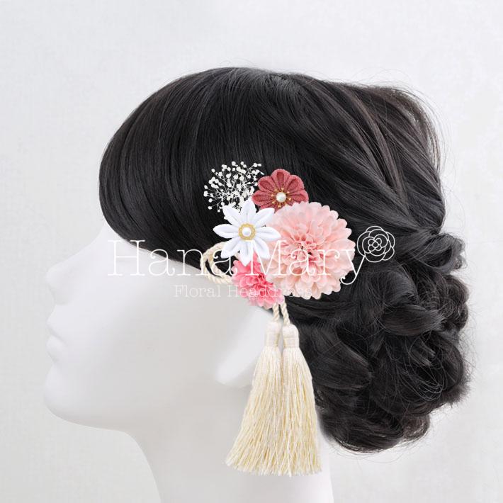 HanaMaryの髪飾りは生花をリアルに再現したアートフラワーと呼ばれるハイクオリティーな造花を使用しています。耐久性に優れ、成人式・卒業式やウェディングなどに何度でも繰り返し使用することができます。