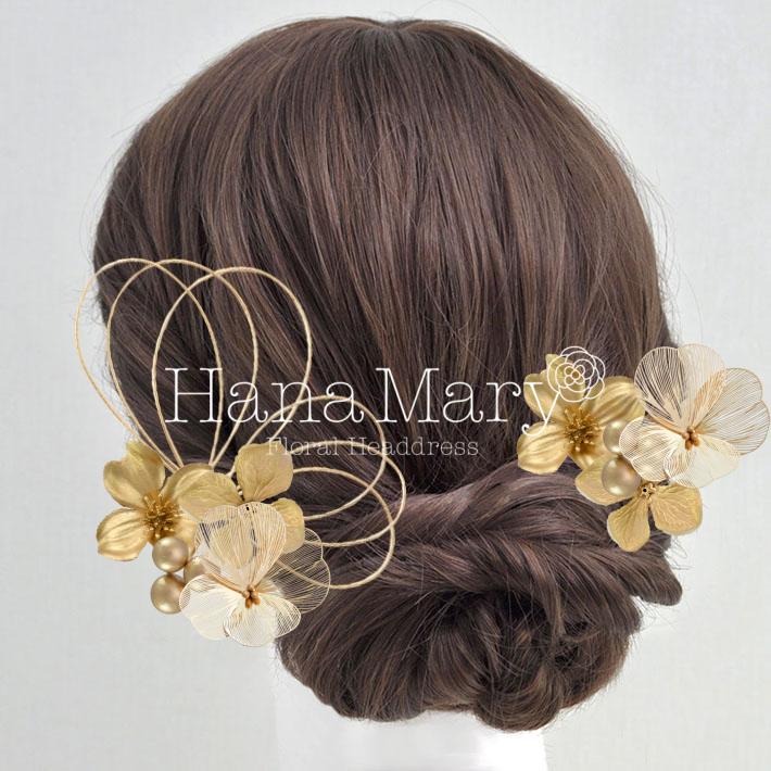 その日のヘアスタイルによって自由に一輪一輪配置できます。お花の数が多い場合でも、アメピンを追加して簡単にしっかりと固定できます。