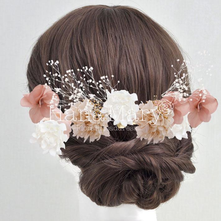 HanaMaryの髪飾りは生花をリアルに再現したアートフラワーと呼ばれるハイクオリティーな造花を使用しています。耐久性に優れ、成人式・卒業式やウェディングなどに何度でも繰り返し使用することができます。