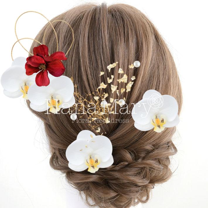その日のヘアスタイルによって自由に一輪一輪配置できます。お花の数が多い場合でも、アメピンを追加して簡単にしっかりと固定できます。