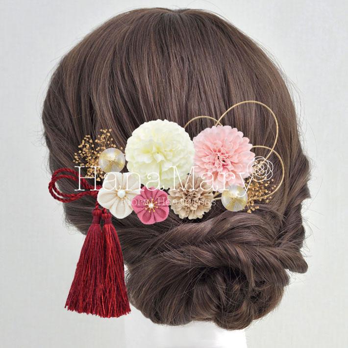 HanaMaryの髪飾りは生花をリアルに再現したアートフラワーと呼ばれるハイクオリティーな造花を使用しています。耐久性に優れ、成人式・卒業式やウェディングなどに何度でも繰り返し使用することができます。
