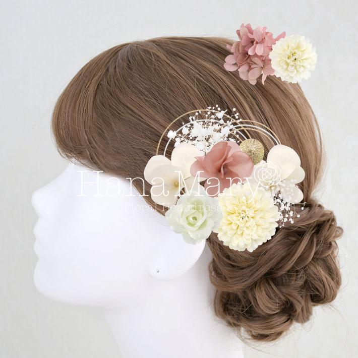 HanaMaryの髪飾りは生花をリアルに再現したアートフラワーと呼ばれるハイクオリティーな造花を使用しています。耐久性に優れ、成人式・卒業式やウェディングなどに何度でも繰り返し使用することができます。