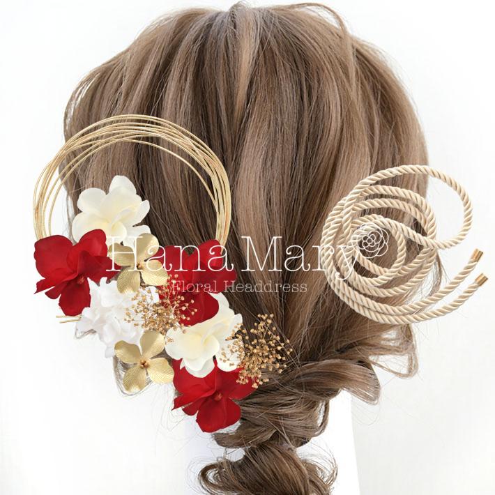 その日のヘアスタイルによって自由に一輪一輪配置できます。お花の数が多い場合でも、アメピンを追加して簡単にしっかりと固定できます。