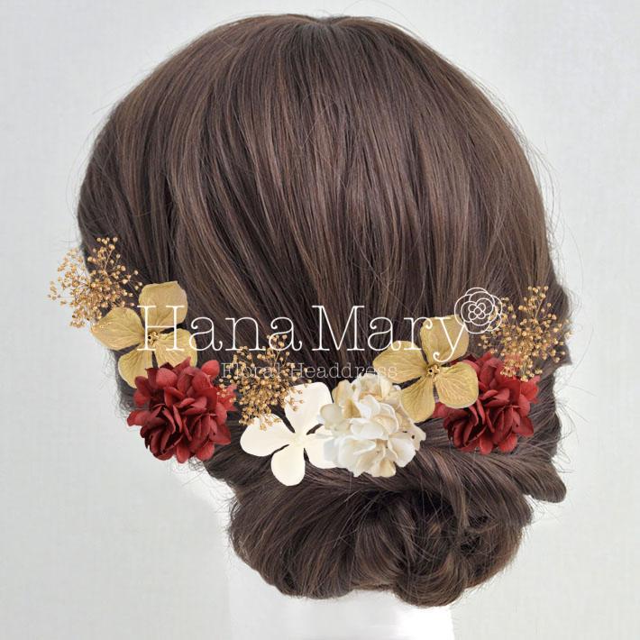 HanaMaryの髪飾りは生花をリアルに再現したアートフラワーと呼ばれるハイクオリティーな造花を使用しています。耐久性に優れ、成人式・卒業式やウェディングなどに何度でも繰り返し使用することができます。