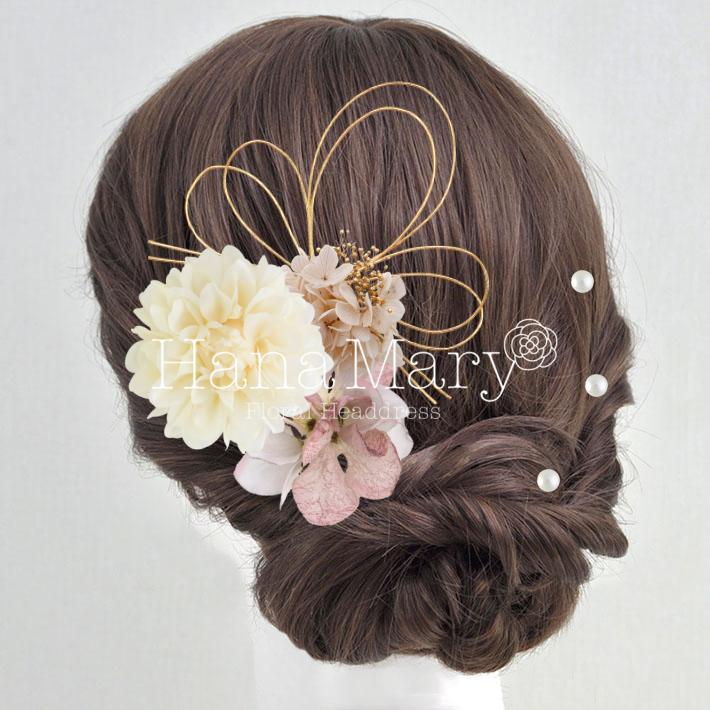 HanaMaryの髪飾りは生花をリアルに再現したアートフラワーと呼ばれるハイクオリティーな造花を使用しています。耐久性に優れ、成人式・卒業式やウェディングなどに何度でも繰り返し使用することができます。