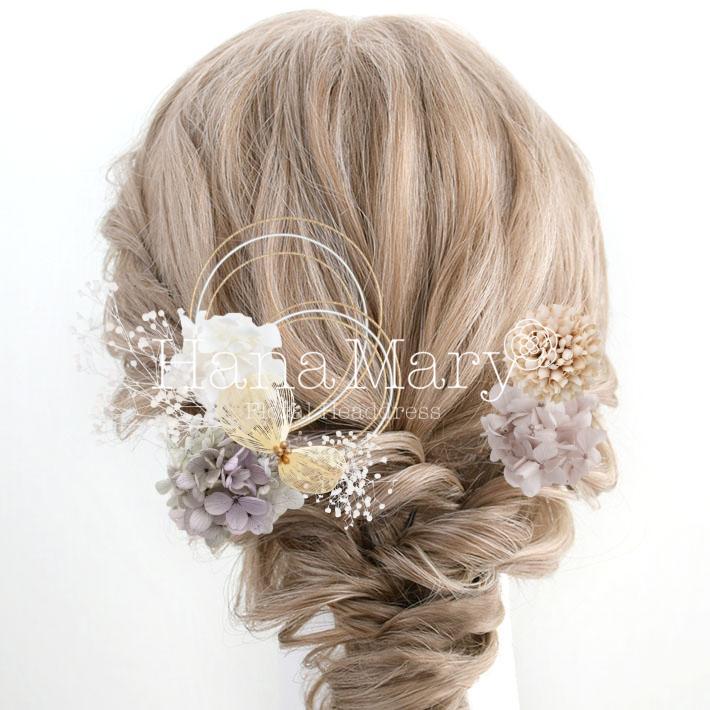 HanaMaryの髪飾りは生花をリアルに再現したアートフラワーと呼ばれるハイクオリティーな造花を使用しています。耐久性に優れ、成人式・卒業式やウェディングなどに何度でも繰り返し使用することができます。