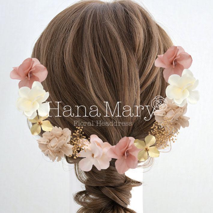 その日のヘアスタイルによって自由に一輪一輪配置できます。お花の数が多い場合でも、アメピンを追加して簡単にしっかりと固定できます。