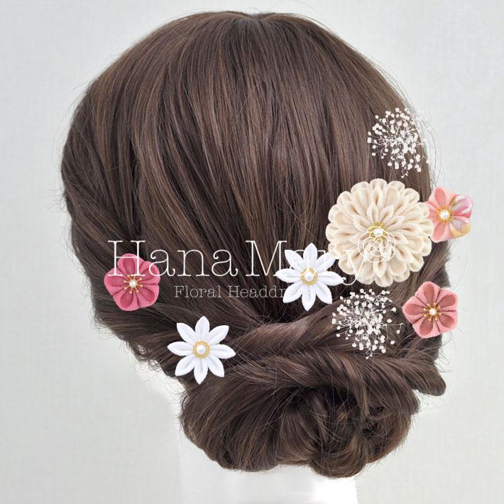 その日のヘアスタイルによって自由に一輪一輪配置できます。お花の数が多い場合でも、アメピンを追加して簡単にしっかりと固定できます。