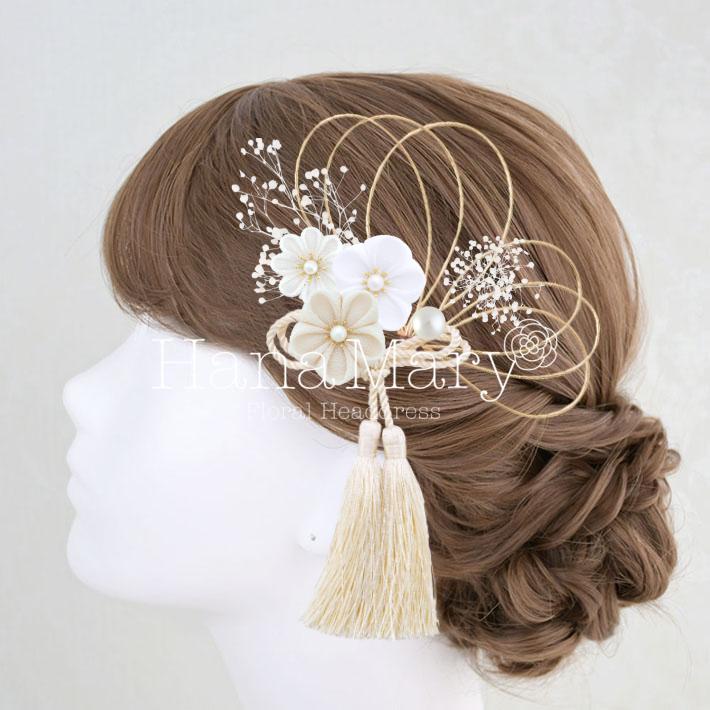 HanaMaryの髪飾りは生花をリアルに再現したアートフラワーと呼ばれるハイクオリティーな造花を使用しています。耐久性に優れ、成人式・卒業式やウェディングなどに何度でも繰り返し使用することができます。
