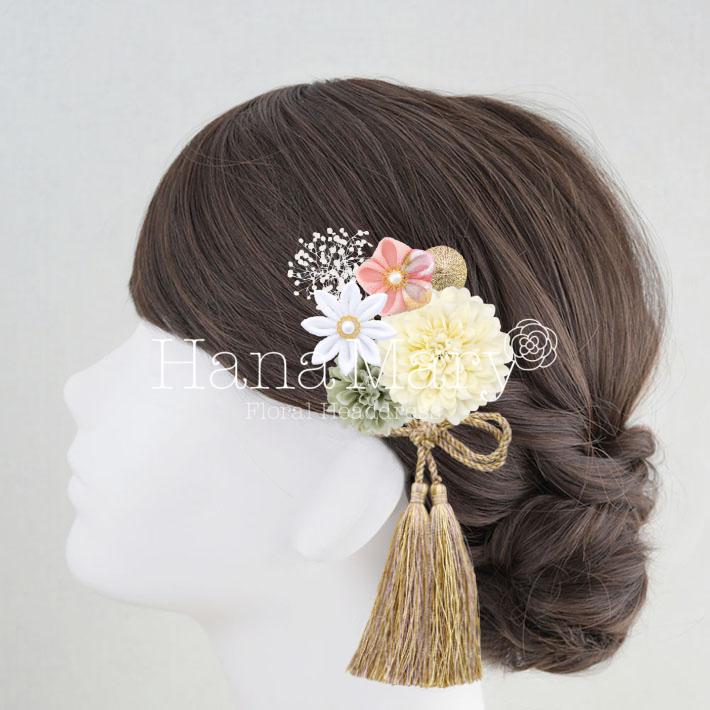 HanaMaryの髪飾りは生花をリアルに再現したアートフラワーと呼ばれるハイクオリティーな造花を使用しています。耐久性に優れ、成人式・卒業式やウェディングなどに何度でも繰り返し使用することができます。