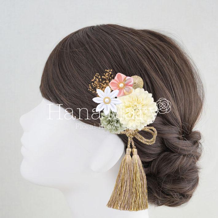 HanaMaryの髪飾りは生花をリアルに再現したアートフラワーと呼ばれるハイクオリティーな造花を使用しています。耐久性に優れ、成人式・卒業式やウェディングなどに何度でも繰り返し使用することができます。